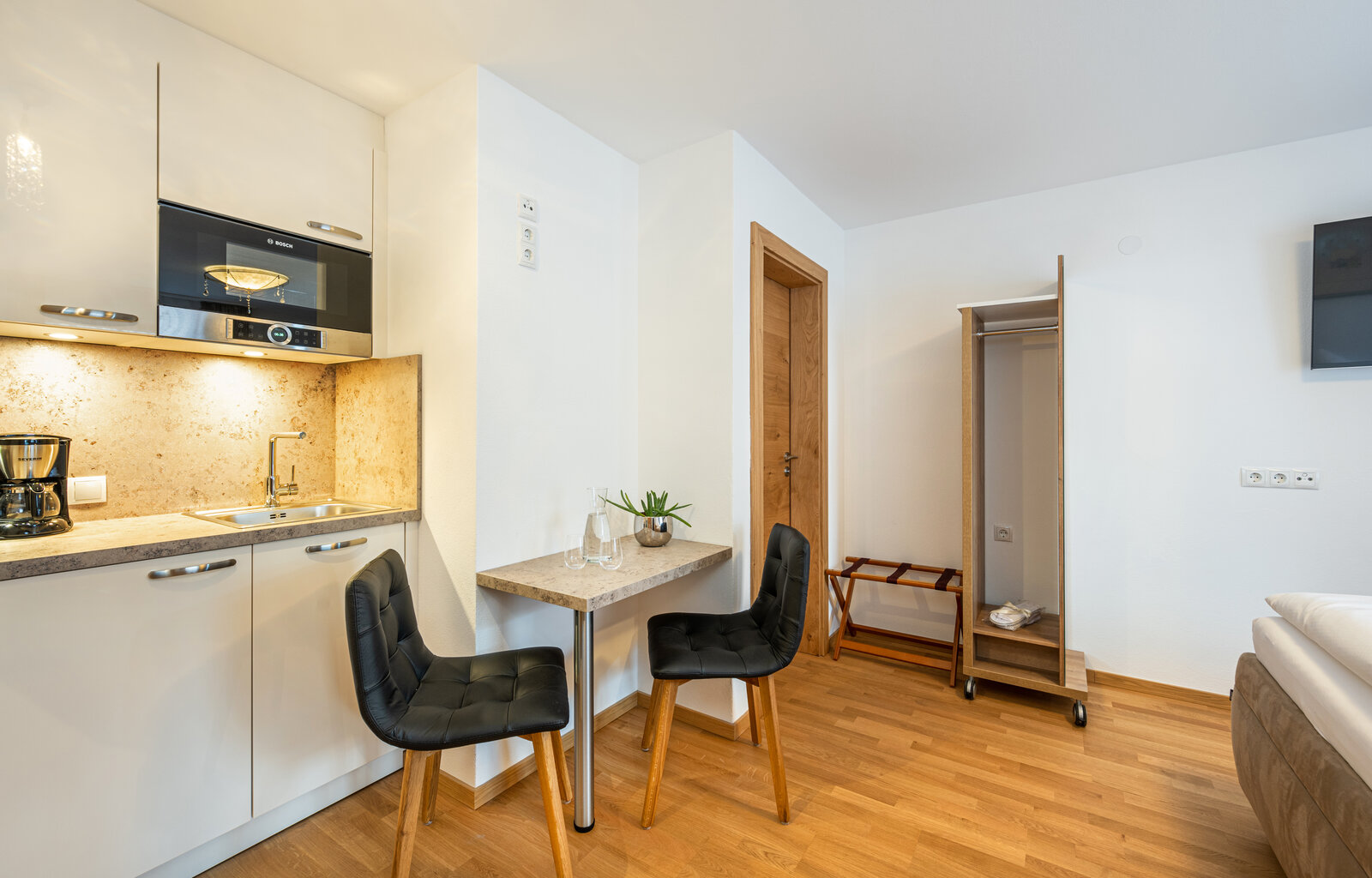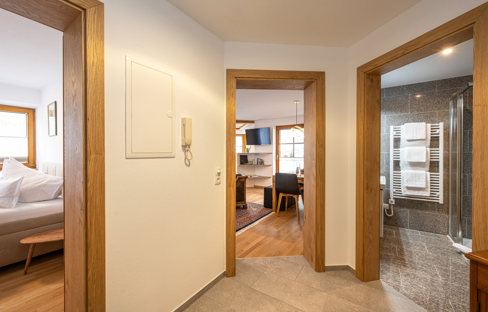 Direkt vor dem Haus kann man in den Wanderbus oder den Skibus einsteigen. Wenige Schritte entfernt finden Sie Sportgeschäfte, Restaurants, Cafés, Bars, Skischulen und den Tourismusverband.